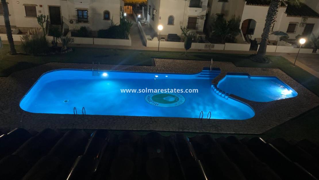 Balcón orientado al sur con vistas directas a la preciosa piscina comunitaria. Acceso desde el balcón al amplio solárium privado con barbacoa. Jardín lateral y trasero.