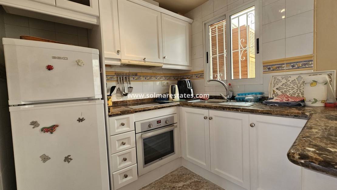 Colinas de la Zenia II es una urbanización privada y segura que ofrece jardines impecablemente cuidados, elegantes fuentes y una espectacular piscina comunitaria. Esta casa adosada de estilo español, en excelente estado de conservación, se vende completamente amueblada e incluye aire acondicionado y ventanas oscilobatientes de doble acristalamiento. Se recomienda encarecidamente visitarla.