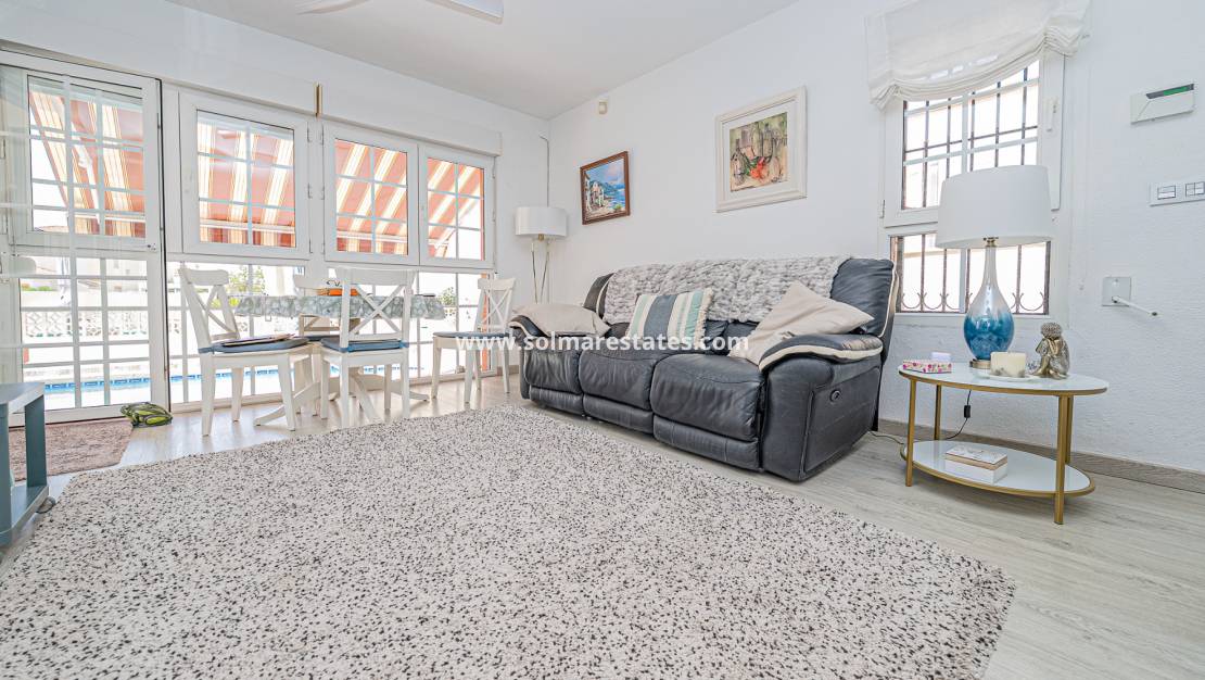Entre sus características adicionales se incluyen un garaje cerrado, trastero, aire acondicionado, armarios empotrados, ventiladores de techo, electrodomésticos y persianas. La villa se vende completamente amueblada y se presenta en impecables condiciones.