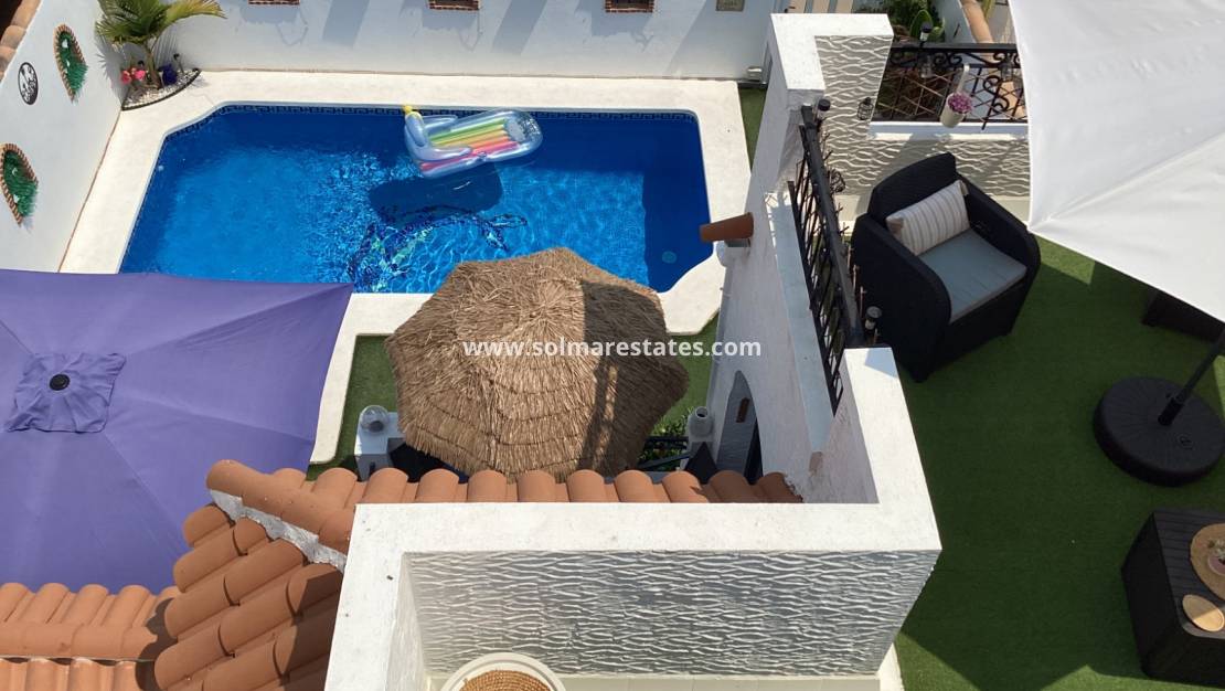 Bienvenido a su propia casa adosada estilo Ibiza con piscina privada en la soleada localidad de Los Altos. Los Altos es una popular zona residencial a pocos minutos de la costa y de la animada ciudad de Torrevieja. Esta preciosa casa adosada, orientada al sureste y completamente reformada, ofrece mucha luz natural, una gran sensación de amplitud e impresionantes vistas a las salinas en la distancia.