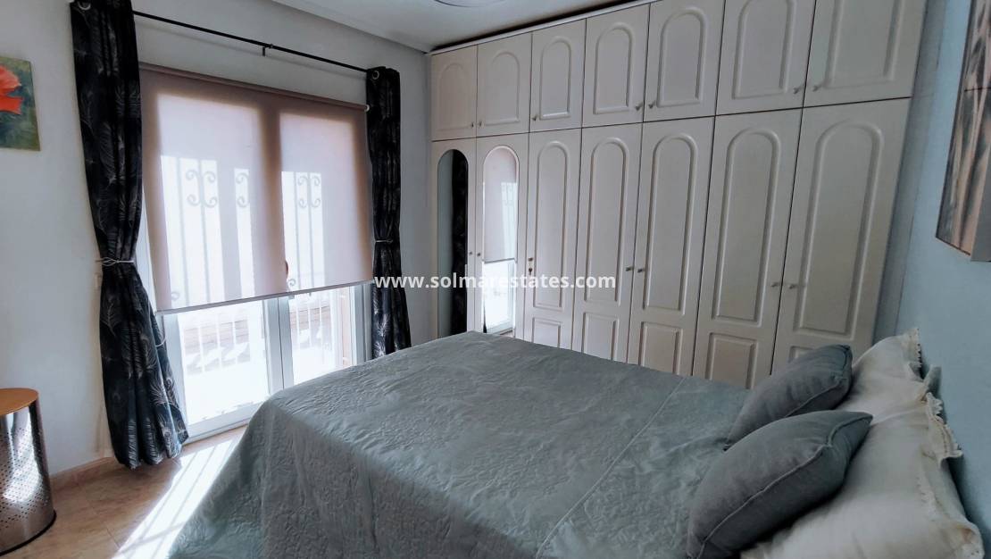 En la planta superior hay dos habitaciones dobles , ambas con armarios empotrados y balcones privados , además de un baño familiar con una amplia ducha a ras de suelo. La vivienda dispone de aire acondicionado (frío/calor) en todas las estancias y se vende completamente amueblada .