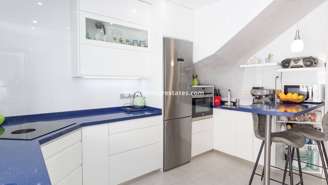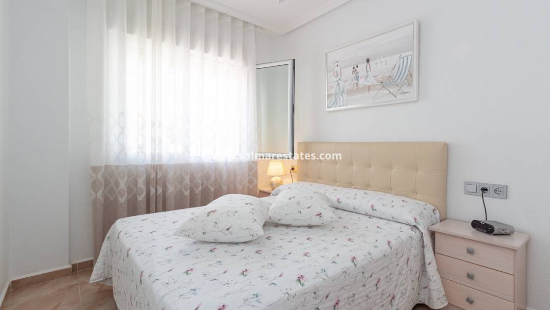 Esta encantadora casa adosada en el corazón de La Zenia ofrece un hogar de estilo español tradicional con comodidades modernas, ideal para familias o parejas. La propiedad cuenta con tres amplias habitaciones, incluyendo una suite principal con baño privado, vestidor y terraza, además de un aseo con ducha para invitados. Ambos baños han sido completamente reformados.