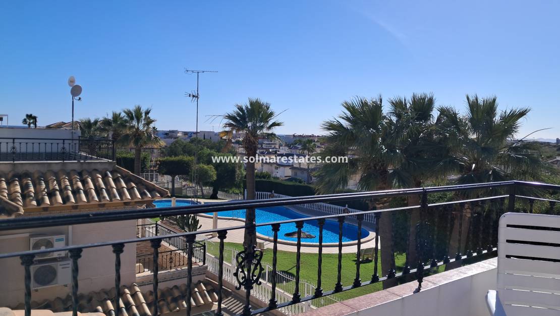 Un magnífico modelo Azucena de tres plantas en la codiciada urbanización Villas San José, con una ubicación ideal a poca distancia a pie del bulevar La Zenia y del popular mercado de los sábados. Es muy difícil encontrar viviendas en esta misma ubicación, con vistas al mar y a la piscina.