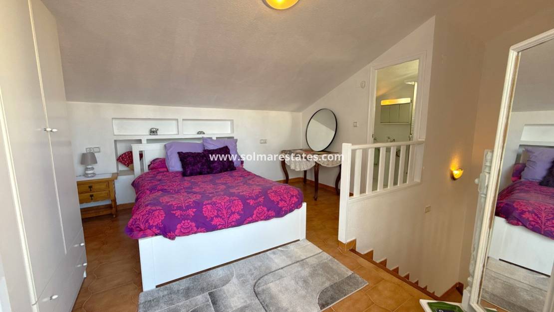 En la planta superior, un tercer dormitorio cuenta con baño en suite y acceso a una espaciosa azotea con impresionantes vistas. La terraza incluye una zona de barbacoa y un amplio espacio para comer y tomar el sol.