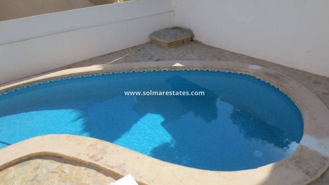 Esta extraordinaria villa en El Galán se encuentra en la tranquila zona de la Laguna Azul de la Costa Blanca, ofreciendo privacidad a un corto paseo de todos los servicios y a un corto trayecto en coche de impresionantes playas. Perfecta para familias numerosas o dos familias que buscan privacidad ocasional, la villa cuenta con dos entradas independientes y tres niveles de espacio habitable.