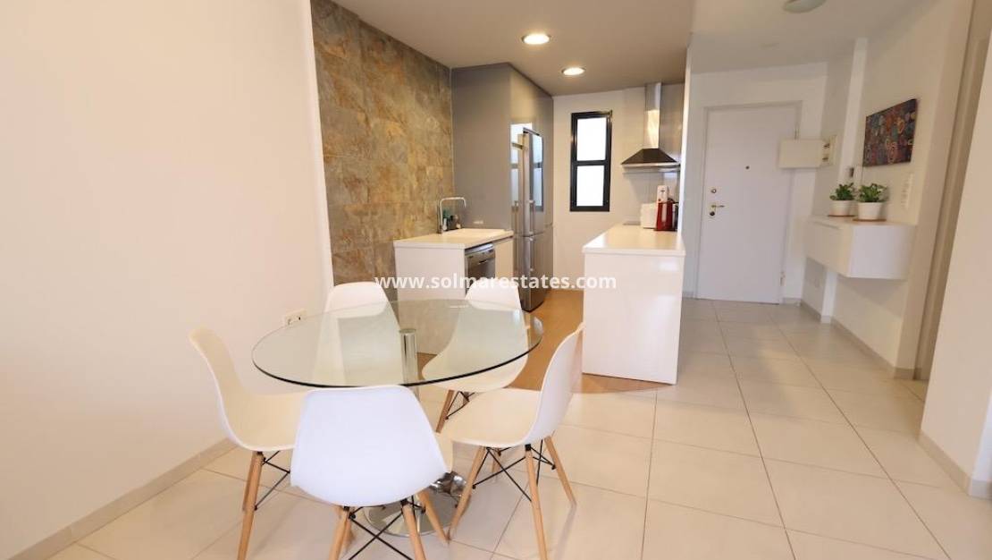 Apartamento de 77 m² con orientación sur y 2 dormitorios, uno de ellos en suite, y 2 baños. La propiedad ofrece un amplio salón-comedor, una cocina americana y una terraza privada. Se vende completamente amueblado y equipado con aire acondicionado, lo que le garantiza comodidad y confort desde el primer día.
