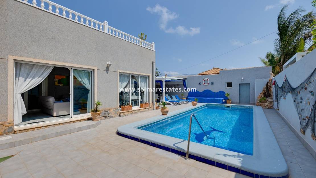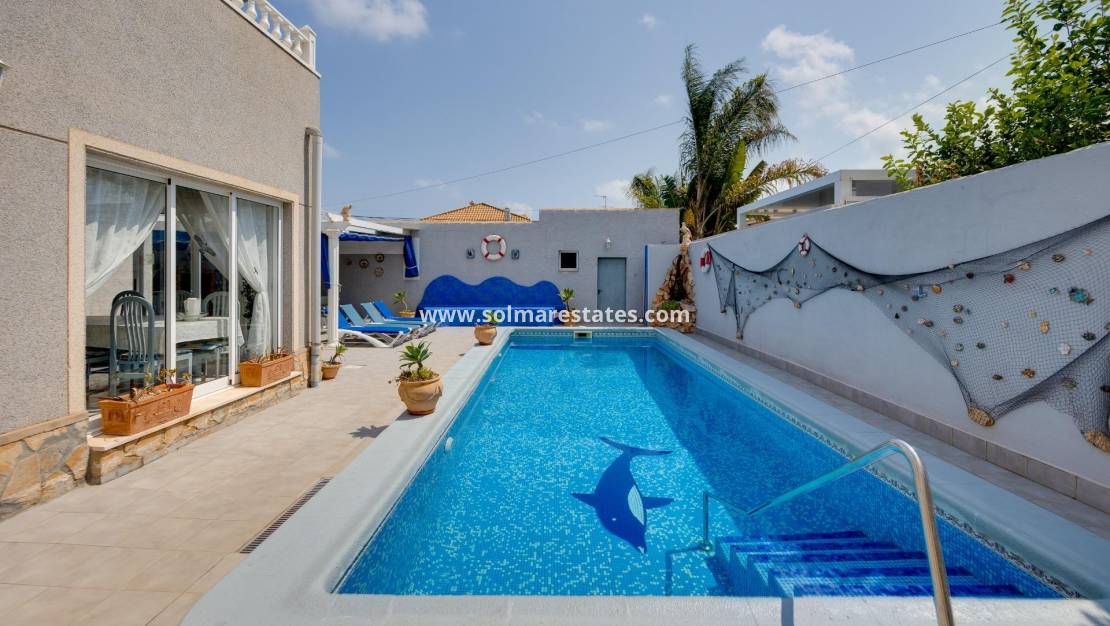Esta excepcional villa independiente se encuentra en la codiciada zona de La Regia, Cabo Roig , muy cerca de la playa de Aguamarina y de la famosa costa de Cabo Roig. La propiedad representa una excelente oportunidad de inversión y estilo de vida, con licencia turística y una distribución muy versátil.