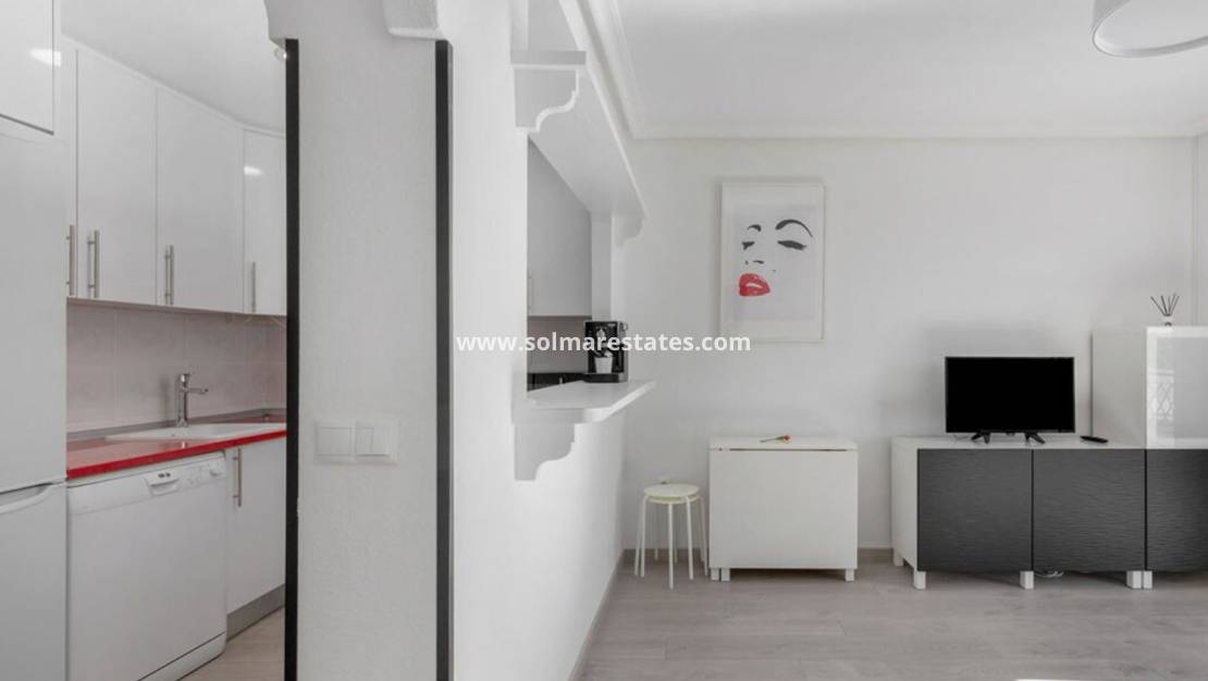 El apartamento se vende completamente amueblado y equipado , incluyendo electrodomésticos, aire acondicionado y sistema de alarma , listo para entrar a vivir o para alquilar sin demora. También incluye una plaza de aparcamiento privado , una característica muy solicitada en esta popular zona costera.