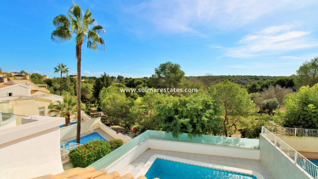 Esta excepcional villa independiente de 3 dormitorios y 2 baños ocupa una ubicación privilegiada en primera línea del prestigioso Las Ramblas Golf Resort , con impresionantes vistas a los fairways, al campo circundante y al Mediterráneo. Con una ubicación ideal, la villa se encuentra a solo cinco minutos a pie de la casa club, con restaurante y campo de prácticas, y cerca del popular centro comercial La Fuente , con una amplia selección de bares, tiendas y restaurantes. Las galardonadas playas de Campoamor y Cabo Roig, con bandera azul, están a menos de diez minutos en coche.