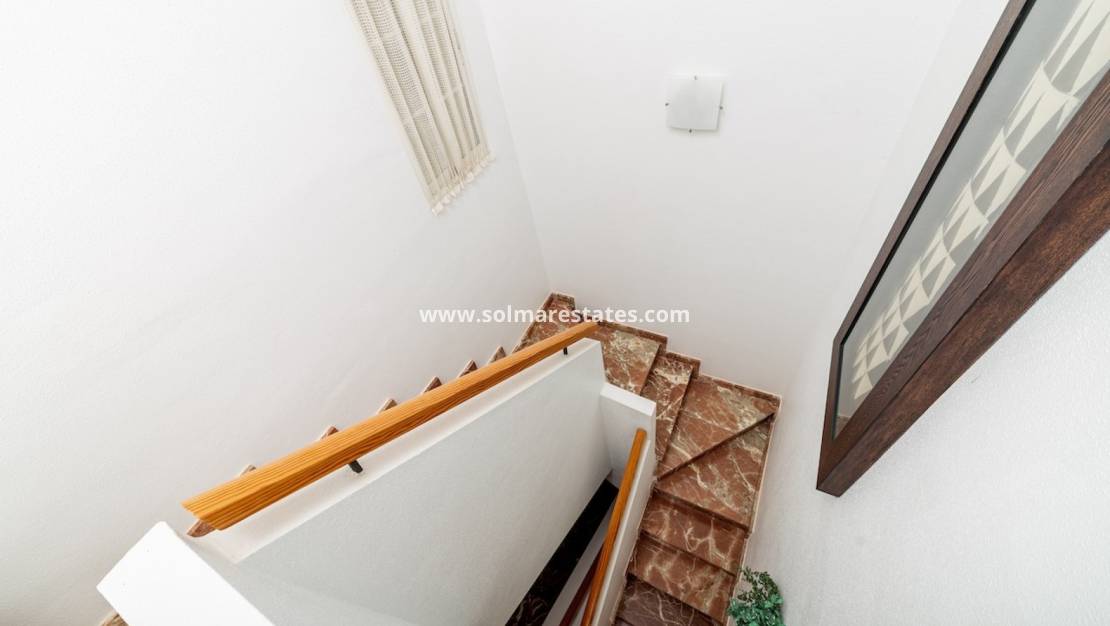 Una escalera conduce a una terraza acristalada en la azotea con vistas al mar, lo que proporciona un excelente espacio habitable adicional.
