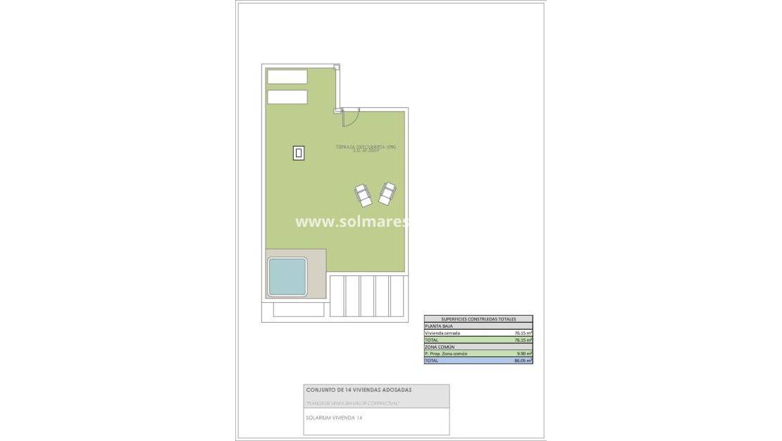 La promoción ofrece apartamentos contemporáneos de 2 dormitorios y 2 baños, incluyendo un dormitorio principal con baño en suite. Los compradores pueden elegir entre propiedades en planta baja con amplias terrazas privadas, perfectas para disfrutar del aire libre, o viviendas en la última planta con terraza y solárium privado, ideales para tomar el sol y relajarse. A algunos de los apartamentos de la última planta se puede acceder en ascensor, lo que añade comodidad y accesibilidad.