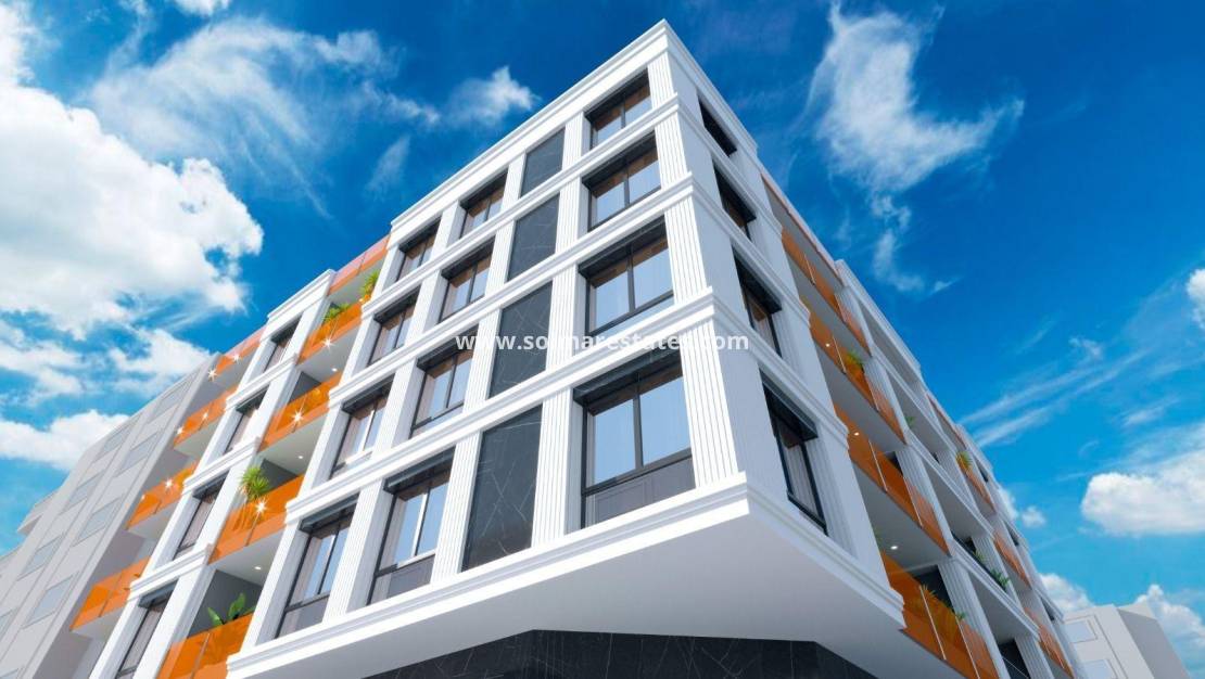 Modernos apartamentos de nueva construcción en el centro de Torrevieja, Costa Blanca Exclusiva promoción residencial con servicios de primera calidad Descubra un selecto proyecto de nueva construcción de 35 modernos apartamentos en el corazón de Torrevieja. Con distribuciones de 1, 2 o 3 dormitorios y 2 o 3 baños, esta residencia también cuenta con lujosos áticos con soláriums privados. Diseñada para ofrecer comodidad y estilo, esta comunidad combina una arquitectura contemporánea con acabados de alta calidad y excepcionales instalaciones comunes. Ubicación privilegiada en el centro de Torrevieja Situada a solo 600 metros de la playa de Acequion, esta promoción goza de una de las ubicaciones más privilegiadas de Torrevieja. Con supermercados, restaurantes, servicios médicos, tiendas y transporte público a poca distancia, es la opción perfecta para aquellos que buscan un cómodo estilo de vida mediterráneo cerca de todo. Torrevieja es famosa por su clima mediterráneo templado, sus hermosas playas de arena y sus animados paseos marítimos, lo que la convierte en uno de los principales destinos de la Costa Blanca. Instalaciones de estilo resort para el bienestar y la relajación El edificio incluye una excepcional gama de servicios comunes. En la planta baja encontrará una piscina climatizada, un espacio social y un gimnasio totalmente equipado. El solárium de la azotea ofrece un auténtico oasis de relajación con tumbonas, sauna finlandesa, zona de barbacoa y minipiscina con jacuzzi. Tanto las escaleras como el ascensor conducen a la azotea, lo que ofrece comodidad y accesibilidad a todos los residentes. Viviendas de alta calidad con diseño contemporáneo Estos apartamentos de nueva construcción cuentan con cocinas americanas integradas en el salón, amplias terrazas, armarios empotrados y cocinas totalmente equipadas con electrodomésticos. Los baños incluyen muebles, mamparas de ducha y calefacción por suelo radiante para un máximo confort. También hay preinstalación para aire acondicionado por conductos. Hay aparcamiento subterráneo y trasteros opcionales disponibles con un coste adicional. Rodeado de naturaleza y belleza costera Torrevieja es famosa por sus lagunas salinas naturales y sus parques naturales protegidos. El Parque Natural de La Mata y Torrevieja se encuentra a poca distancia de la ciudad y ofrece hermosos senderos y espectaculares lagos salinos de color rosa y verde. Este entorno único proporciona un estilo de vida saludable y paisajes impresionantes. Distancias a puntos de interés clave Playa de Acequion 0,6 km Puerto deportivo de Torrevieja 1,5 km Parque Natural de La Mata 4 km Villamartin Golf 8 km Aeropuerto de Alicante 45 km Aeropuerto de Murcia 60 km Viva el estilo de vida mediterráneo No pierda la oportunidad de adquirir una vivienda moderna en una de las ciudades costeras más deseadas de España. Póngase en contacto con nosotros hoy mismo para concertar una visita y asegurarse su plaza en esta excepcional nueva promoción.