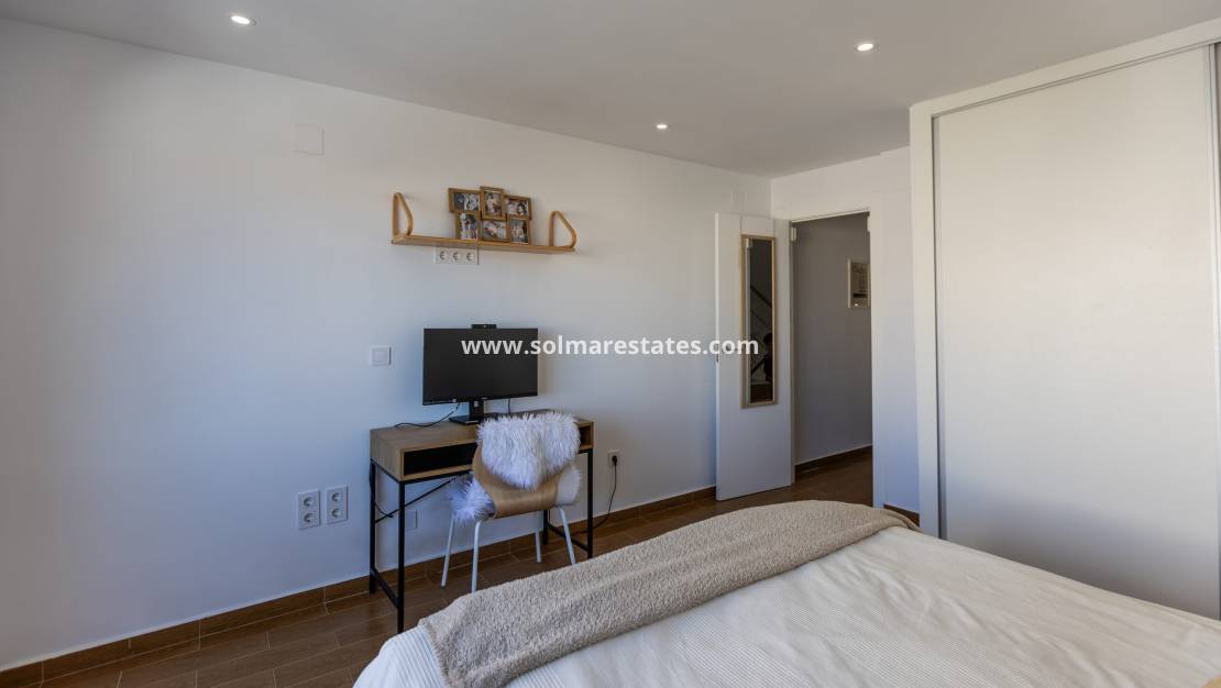 Descubra esta casa adosada de tres plantas, bellamente renovada, ubicada en la tranquila y codiciada zona de Nueva Torrevieja. Diseñada con un estilo moderno y acabados de alta calidad, esta propiedad está lista para entrar a vivir y es ideal para vivir todo el año.