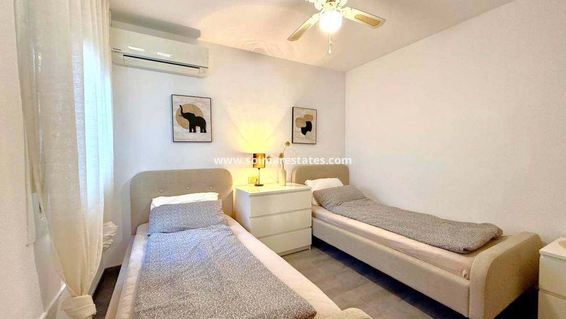 La casa adosada ofrece tres habitaciones dobles y dos baños , proporcionando un alojamiento confortable para familias o invitados.