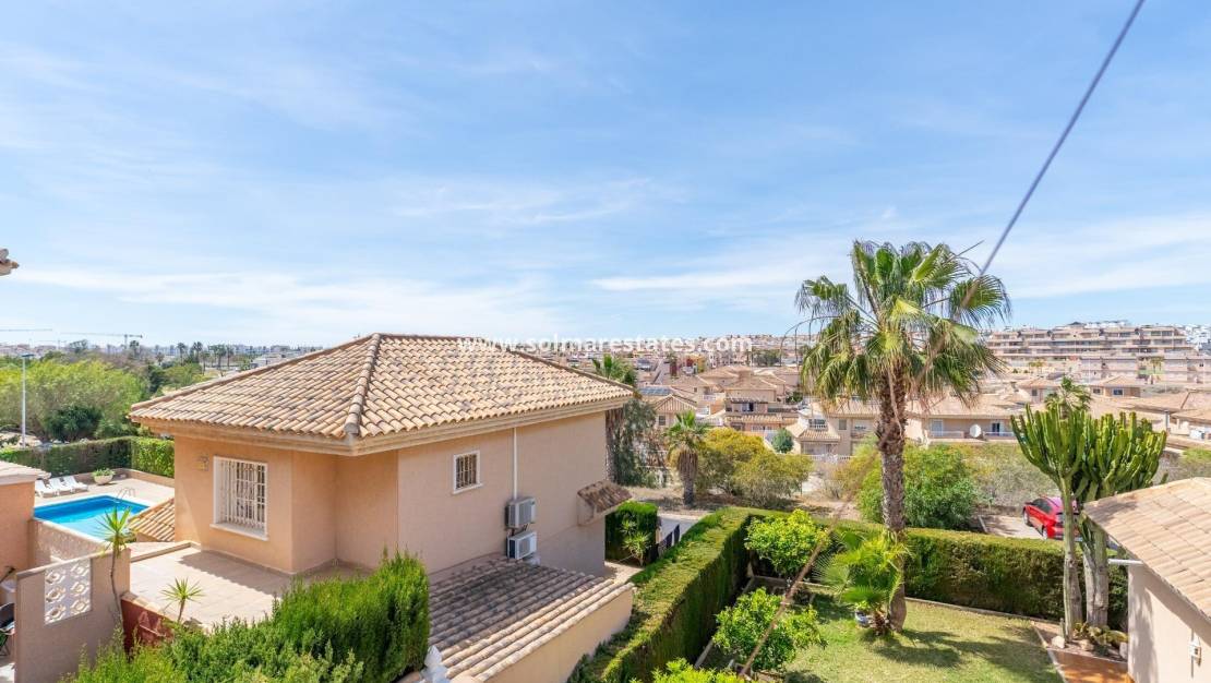 Esta villa independiente, bellamente renovada, se encuentra en una de las zonas más codiciadas de Orihuela Costa , ofreciendo comodidad, privacidad y el perfecto estilo de vida mediterráneo. La propiedad forma parte de un exclusivo complejo residencial con piscina comunitaria y aparcamiento designado, que combina naturaleza, encanto y tranquilidad .