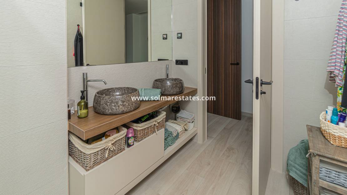 La propiedad ofrece tres dormitorios. La suite principal incluye un espacioso dormitorio doble con puertas que dan al jardín y a la terraza, un amplio vestidor con amplio espacio de almacenamiento y espejos de altura completa, y un lujoso baño en suite con ducha y lavabos dobles. Otros dos dormitorios de invitados cuentan con armarios empotrados y comparten un baño con ducha moderno.