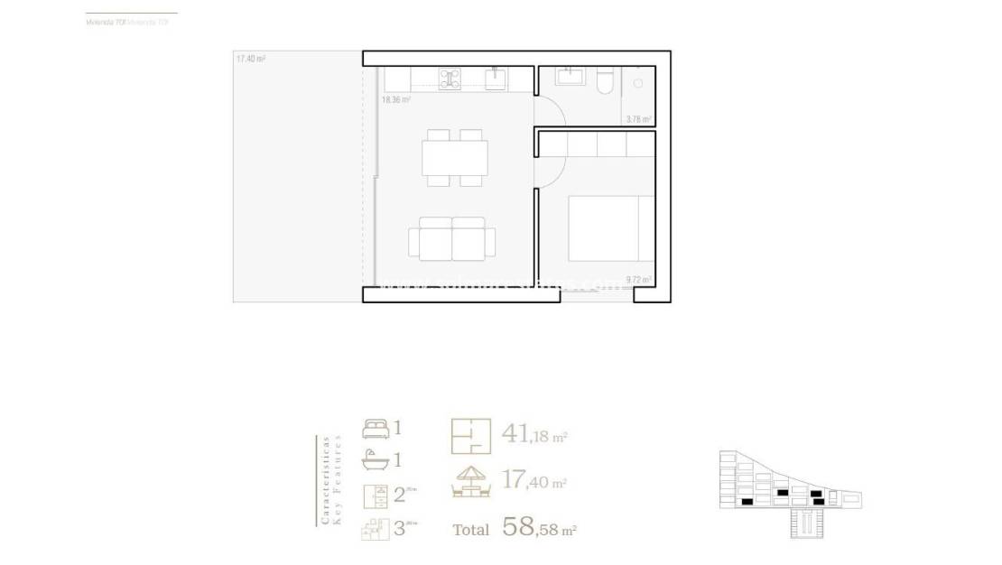 Villas independientes de nueva construcción en Alfaz del Pi, cerca de la playa de Albir Exclusivo proyecto residencial en Alfaz del Pi Esta exclusiva promoción residencial de nueva construcción consta de 19 villas independientes situadas en Alfaz del Pi, en una zona residencial moderna y bien planificada, rodeada de viviendas contemporáneas de alta calidad. Situado a unos 5 km del mar Mediterráneo, el proyecto goza de una ubicación privilegiada entre la costa y la sierra de Alicante, lo que le confiere un entorno tranquilo con excelentes conexiones. Es una opción ideal para vivir de forma permanente, como segunda residencia o como inversión inteligente en la Costa Blanca. Una ubicación privilegiada entre el mar y la montaña Alfaz del Pi es conocido por su estilo de vida relajado, su comunidad internacional y su excelente calidad de vida. El municipio ofrece un equilibrio perfecto entre naturaleza y servicios, con el Parque Natural de la Sierra Helada cerca y la hermosa playa de Albir a solo unos minutos. Benidorm está a solo 10 minutos en coche y ofrece una amplia gama de centros comerciales, restaurantes, locales de ocio y parques temáticos como Terra Mítica y Aqualandia. La zona también ofrece campos de golf, deportes acuáticos, actividades culturales y un clima mediterráneo suave durante todo el año. Diseño cuidadoso y distribución de la comunidad La urbanización está distribuida en dos niveles para adaptarse de forma natural al terreno. El nivel superior está dedicado íntegramente a las viviendas y a las zonas comunes ajardinadas, creando un entorno peatonal seguro y tranquilo. El nivel inferior alberga plazas de aparcamiento, trasteros y zonas técnicas, discretamente integrados en el diseño. Esta separación garantiza la privacidad, la tranquilidad y una experiencia de vida sin coches dentro de la zona residencial. Villas modernas con jardines privados Las villas se distribuyen en una sola planta y ofrecen uno o dos dormitorios con un cuarto de baño. Cada vivienda presenta un diseño contemporáneo con líneas limpias, grandes ventanales y una entrada independiente. Las amplias terrazas de aproximadamente 17 m2 conectan a la perfección con las zonas de estar, mientras que los jardines privados tienen una superficie de entre 46 m2 y 200 m2, ideales para disfrutar del aire libre. Todas las viviendas incluyen una plaza de aparcamiento privada, con trasteros disponibles como extra opcional. Zonas comunes y especificaciones de calidad Los residentes pueden disfrutar de una piscina comunitaria de bonito diseño con solárium, rodeada de jardines que crean un ambiente tranquilo y acogedor. Las viviendas incluyen una cocina totalmente equipada en acabado blanco mate con encimera negra, aire acondicionado por unidades split, sistema aerotérmico para agua caliente, puerta de entrada de seguridad reforzada y baños con muebles empotrados y mamparas de ducha. Un ascensor conecta la planta del aparcamiento con la zona residencial para mayor comodidad. Distancias clave La playa de Albir está a unos 5 km. Benidorm está a 6 km. La ciudad de Alicante está a 49 km. El aeropuerto de Alicante está a unos 62 km. Hay varios campos de golf a entre 15 y 20 km. Su nueva casa en la Costa Blanca le espera Disfrute de privacidad, diseño moderno y una ubicación excepcional en Alfaz del Pi. Póngase en contacto con nosotros hoy mismo para obtener más información o concertar una visita a estas exclusivas villas de nueva construcción.