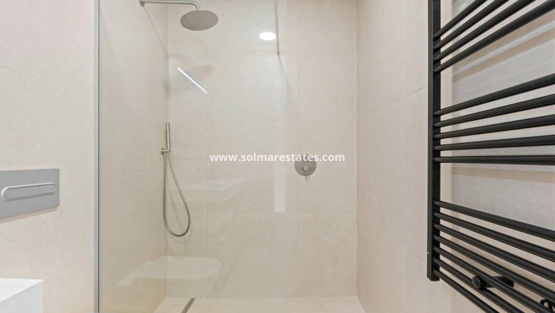 Villas de nueva construcción cerca de Serena Golf en Los Alcázares Villas modernas en una ubicación privilegiada junto a la costa y al campo de golf Este exclusivo proyecto residencial de nueva construcción ofrece villas modernas situadas en Los Alcázares, a poca distancia del prestigioso Serena Golf y a solo 1,2 km de las playas de arena del Mar Menor. Situadas en una de las zonas más atractivas de la Región de Murcia, estas viviendas combinan un diseño contemporáneo, comodidad y una excelente ubicación cerca del mar, del golf y de todos los servicios diarios. Los Alcázares es una localidad costera bien establecida, conocida por su estilo de vida relajado, su largo paseo marítimo, los deportes acuáticos y su clima templado durante todo el año. Diseño de una sola planta con espacios exteriores privados La promoción cuenta con elegantes villas de 3 dormitorios y 2 baños, disponibles en dos tamaños diferentes, de aproximadamente 106 m² y 130 m². El modelo más grande también incluye un aseo adicional para invitados. Todas las villas están diseñadas en una sola planta, lo que ofrece una vida práctica y cómoda. La cocina, el comedor y la sala de estar de planta abierta conectan directamente con una terraza y un jardín privado con piscina, creando un espacio ideal para la vida interior y exterior. Cada propiedad incluye también un solárium privado y una plaza de aparcamiento en la parcela. Acabados de alta calidad y equipamiento moderno Estas villas están construidas con materiales de alta calidad y equipadas con características modernas. Las cocinas, totalmente equipadas, están disponibles en acabado blanco brillante o madera e incluyen encimeras de cuarzo, fregadero de acero inoxidable, placa de inducción con extractor integrado, horno, microondas, lavadora, frigorífico integrado y lavavajillas. Los baños están equipados con muebles, espejos, iluminación y calentadores eléctricos de toallas. Otras características adicionales son las persianas eléctricas en los dormitorios, la iluminación LED en toda la propiedad y un completo sistema de aire acondicionado por conductos de Fujitsu. Piscina privada y confort energéticamente eficiente Cada villa incluye una piscina privada con acabado de azulejos cerámicos azules, escalones integrados e iluminación LED blanca. La piscina está preparada con preinstalación para una bomba de calor. La combinación de un control climático eficiente, una construcción moderna y un diseño bien pensado garantiza el confort durante todo el año. Excelente conectividad y distancias clave Las villas se encuentran a poca distancia a pie del centro de Los Alcázares y muy cerca de Serena Golf. La playa está a aproximadamente 1,2 km. La ciudad de Cartagena está a unos 20 km y ofrece una rica oferta cultural y gastronómica. El aeropuerto internacional de Murcia-Corvera está a unos 22 km y el de Alicante, a unos 90 km. También hay varios campos de golf y puertos deportivos en las cercanías, lo que hace que esta ubicación sea ideal tanto para vivir como para pasar las vacaciones. Su hogar ideal junto al mar y al golf Si busca una villa moderna de nueva construcción cerca de la playa y del golf en Los Alcázares, póngase en contacto con nosotros hoy mismo para obtener más información o concertar una visita privada.