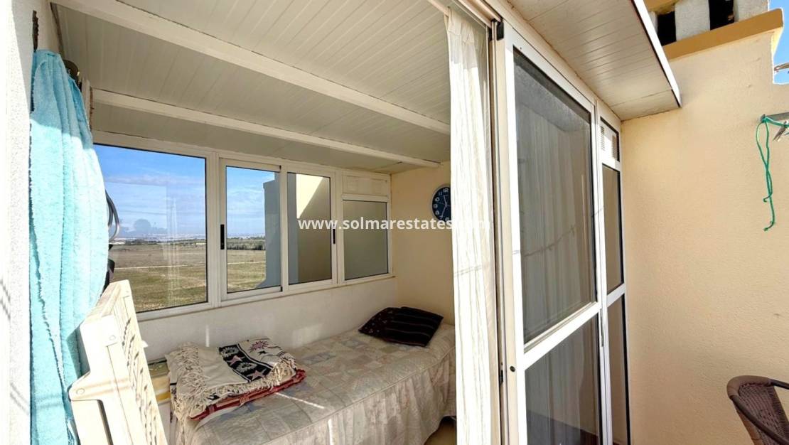 Dispone de dos dormitorios dobles, uno de ellos con baño en suite, que ofrecen privacidad y comodidad para la familia o invitados. Además, incluye un baño familiar totalmente equipado, amplio espacio de almacenamiento y acceso a una terraza en la azotea con vistas panorámicas a los alrededores y a los campos de golf.