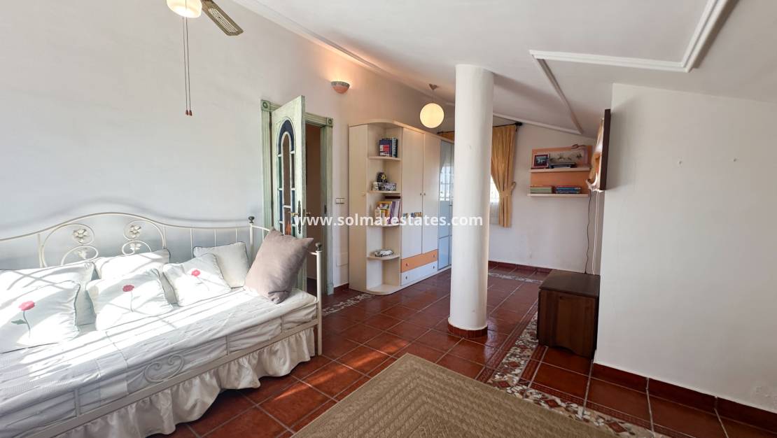 La villa cuenta con amplios y luminosos salones, con seis dormitorios y cinco baños, lo que la convierte en una vivienda ideal tanto para una familia permanente como para una lujosa casa de vacaciones. Su orientación sur garantiza una excelente luz natural durante todo el día, realzando su ambiente cálido y acogedor.
