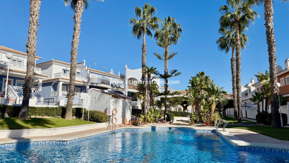 Esta espaciosa casa adosada esquinera de 3 dormitorios y 4 baños se encuentra en la cotizada zona de Doña Pepa , a pocos minutos del centro. Ubicada en una urbanización cerrada y segura con piscina comunitaria, esta casa con orientación suroeste disfruta de sol durante todo el día.