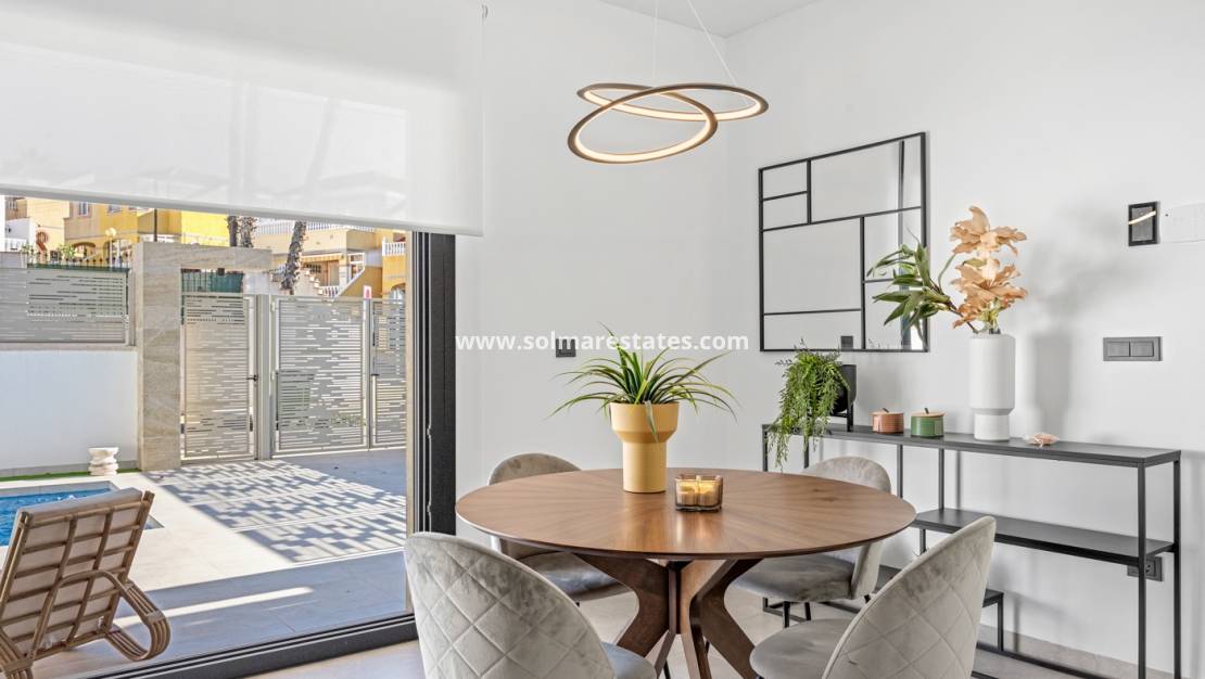 La playa y el famoso centro comercial La Zenia Boulevard están a solo 10 minutos en coche , mientras que supermercados, farmacias y tiendas de uso diario se encuentran a menos de 3 minutos .