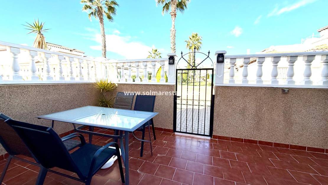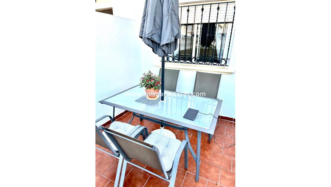 La casa cuenta con una terraza delantera acristalada y una terraza ajardinada privada, ideal para relajarse o cenar al aire libre mientras disfruta del sol mediterráneo con total privacidad. El apartamento incluye aire acondicionado de alta calidad, muebles incluidos y una plaza de aparcamiento segura, lo que le permite estar listo para entrar a vivir.