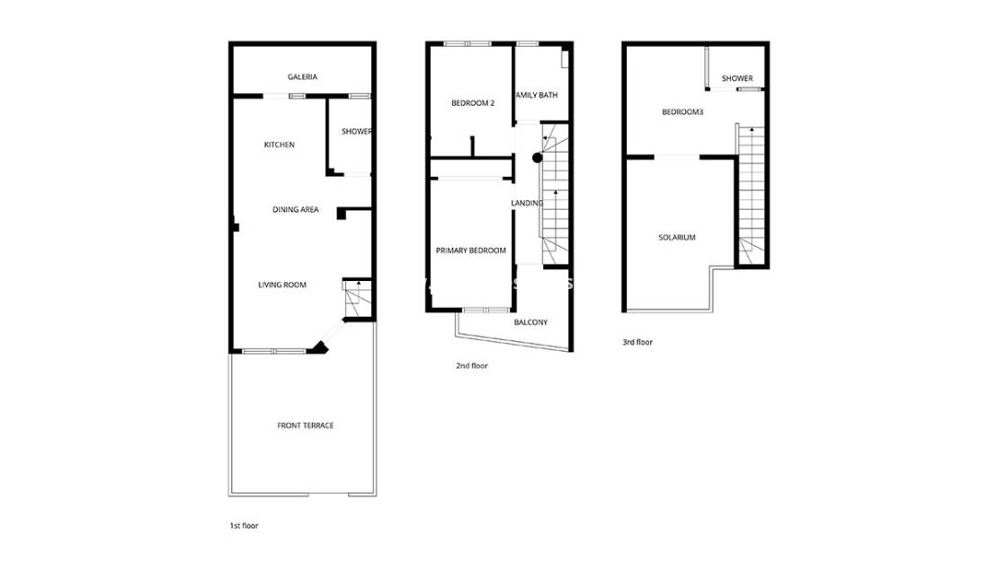 En la planta superior, un tercer dormitorio con baño en suite ofrece mayor privacidad. Unas puertas francesas dan a otra soleada terraza orientada al sur, perfecta para relajarse mientras disfruta de las vistas de la costa.