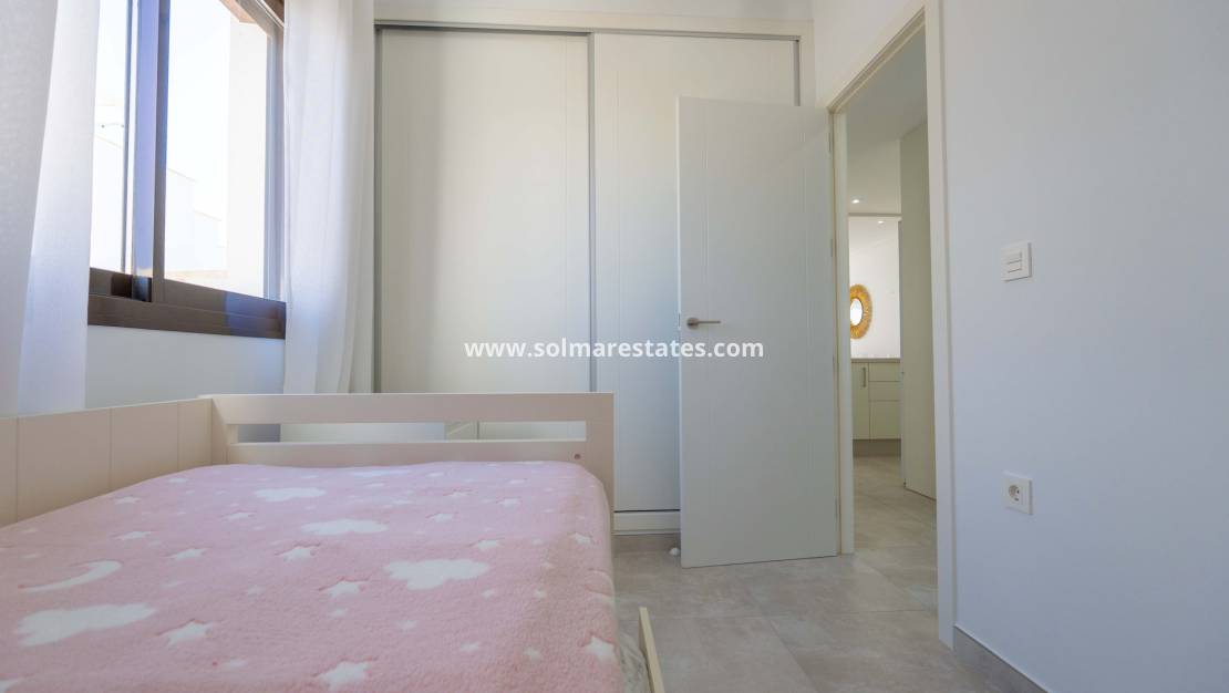 Ubicado en la cotizada urbanización Porto Marina V, este excepcional bungalow en la primera planta ofrece una oportunidad única a tan solo 400 metros de las cristalinas playas mediterráneas de Torre de la Horadada. Con una generosa superficie construida de 74 m², la propiedad está diseñada para disfrutar de la comodidad, la privacidad y una vida costera sin complicaciones.