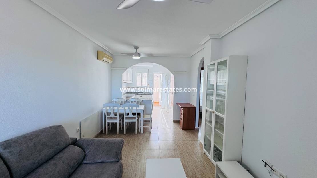 Este espacioso bungalow de tres dormitorios está ubicado en el desarrollo Pinada Gardens en el encantador pueblo de Daya Nueva , ofreciendo un entorno sereno y tranquilo con vistas a las tierras de cultivo abiertas y las montañas circundantes.