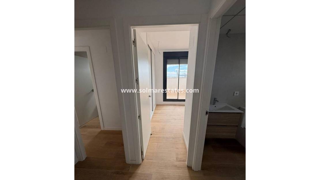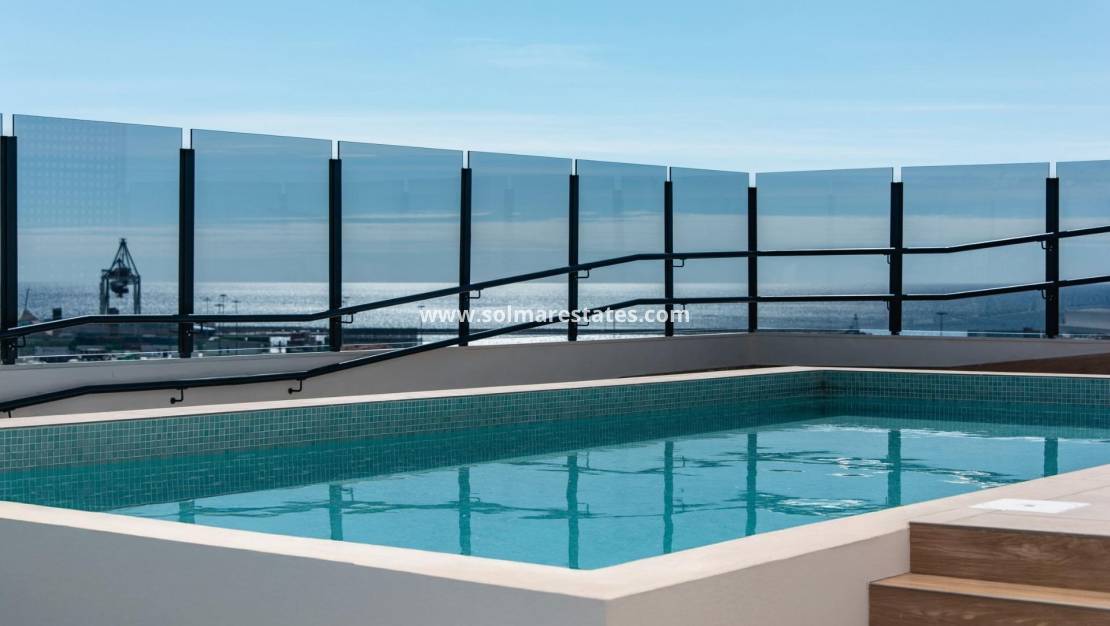 Ático de nueva construcción de 3 dormitorios con vistas al mar en el centro de Alicante, cerca de la Avenida Oscar Espla Ubicación privilegiada en el corazón de la ciudad de Alicante Esta exclusiva promoción de 28 modernos apartamentos de 2 y 3 dormitorios se encuentra junto a la Avenida Oscar Esplá, una de las principales avenidas de Alicante. Situada cerca de la Avenida Maisonnave, la calle más comercial y dinámica de la ciudad, la promoción ofrece una ubicación céntrica inmejorable, con todos los servicios, tiendas, restaurantes y transporte público a poca distancia. Desde la propiedad se puede llegar a la estación de tren de alta velocidad en solo 10 minutos a pie. La estación de autobuses, el paseo marítimo, el puerto deportivo de Alicante y la playa del Postiguet están a menos de 2 km. Las autopistas A31 y AP7 ofrecen excelentes conexiones por carretera, y el aeropuerto de Alicante está a solo 13 km, aproximadamente a 13 minutos en coche. Amplio ático de 3 dormitorios con terraza de 40 m2 Este excepcional ático listo para entrar a vivir ofrece 120 m2 de superficie construida distribuidos en tres dormitorios y dos baños completos. Uno de los dormitorios destaca por su generoso tamaño, lo que lo hace ideal como suite principal. El amplio salón es el corazón de la vivienda, lleno de luz natural y con hermosas vistas al mar que crean una experiencia única en el centro de la ciudad. Lo más destacado de la propiedad es su impresionante terraza privada de 40 m2, perfecta para cenar al aire libre, relajarse al sol o recibir a amigos y familiares mientras se disfruta de unas vistas panorámicas. Edificio moderno con zonas comunes de primera calidad El edificio cuenta con ascensor y está totalmente adaptado para personas con movilidad reducida. Los residentes pueden disfrutar de una piscina comunitaria en la azotea y una zona de solárium, ideal para refrescarse durante los cálidos veranos mediterráneos. También hay un aparcamiento exclusivo para bicicletas. La propiedad incluye una plaza de aparcamiento privada subterránea y un trastero, lo que añade comodidad y practicidad a la vida cotidiana. Especificaciones de calidad y eficiencia energética El apartamento se entrega con acabados de alta calidad, incluyendo una cocina equipada con vitrocerámica, horno y campana extractora, armarios empotrados, puerta de entrada de seguridad reforzada y sistema aerotérmico para el agua caliente. La carpintería exterior cuenta con marcos de aluminio con rotura de puente térmico y doble acristalamiento para mejorar el aislamiento. El aire acondicionado y la calefacción mediante bomba de calor garantizan el confort durante todo el año. Vida urbana junto al mar Este ático combina espacio, vistas al mar y una ubicación céntrica privilegiada en Alicante. Póngase en contacto con nosotros hoy mismo para recibir más información o concertar una visita a esta excepcional propiedad de nueva construcción. 857