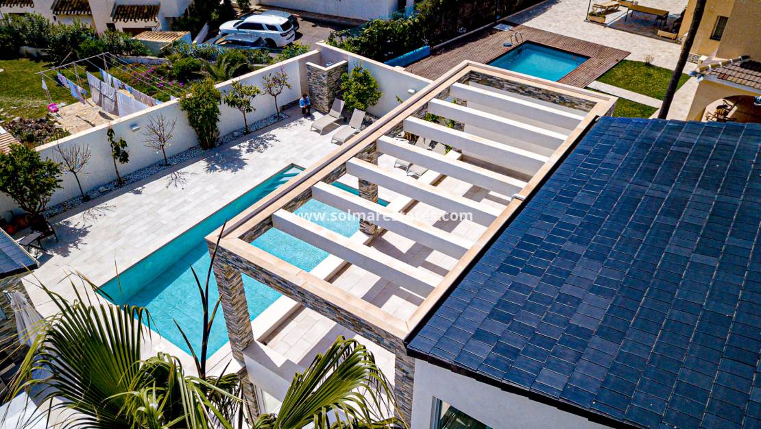 Con un total de 4 habitaciones dobles y tres baños bellamente renovados, esta moderna villa también cuenta con un salón y comedor excepcionales con ventanales que conducen a una impresionante terraza. La terraza es el lugar perfecto para tomar el sol y respirar aire fresco, mientras que la lujosa cocina abierta completamente equipada es una absoluta delicia para todos los aspirantes a chef.
