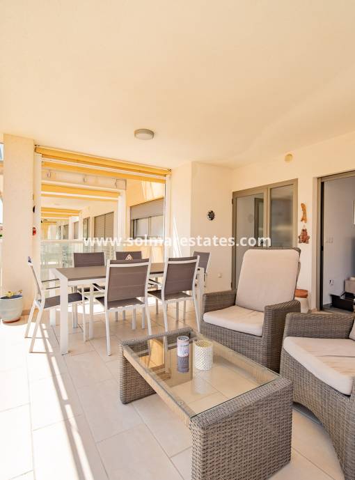 Apartamento moderno y como nuevo en venta en Sun Golf Beach, Las Filipinas, un popular suburbio de Villamartín, ubicado a solo 5 minutos en auto del campo de golf de Villamartín y la Plaza o el centro comercial La Fuente. Este luminoso y espacioso apartamento en el segundo piso cuenta con 2 habitaciones dobles, 2 baños con duchas a ras de suelo y un salón / comedor de planta abierta con una cocina moderna totalmente equipada ubicada estratégicamente en un lado del apartamento, lo que brinda una sensación de separación. El apartamento cuenta con dos grandes terrazas: una orientada al este, perfecta para disfrutar del sol de la mañana y el desayuno, y otra orientada al oeste, ideal para las puestas de sol. La terraza orientada al este también ofrece vistas al mar. La propiedad incluye mosquiteras en todas las ventanas, lo que garantiza la comodidad durante todo el año. Se vende sin muebles pero con extras como aire acondicionado, electrodomésticos, preinstalación de Internet y una plaza de aparcamiento subterráneo privado. Construida por un reconocido constructor local conocido por su calidad y estilo, esta propiedad exhibe un diseño moderno y materiales de primera calidad. El complejo cerrado ofrece jardines comunitarios, una piscina y estacionamiento seguro para residentes. Excelente ubicación cerca de servicios, incluido el supermercado Mercadona y el Centro Comercial La Fuente. A poca distancia en coche del campo de golf de Villamartín, Plaza y a solo 4 km de varias playas con bandera azul en Orihuela Costa. Potencial de alquiler vacacional: Se requiere licencia turística para alquileres. Comuníquese con Inmo Investments hoy mismo para obtener más información o programar una visita.