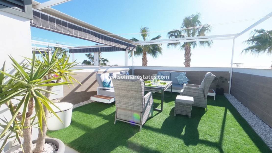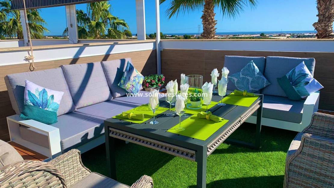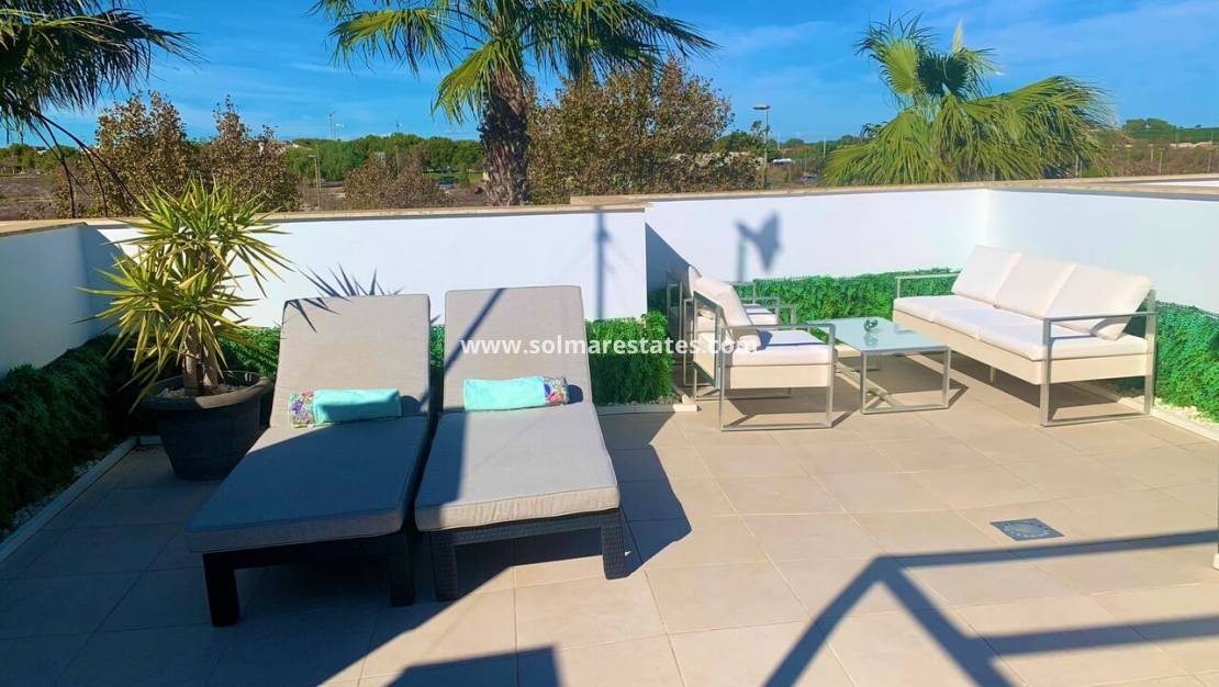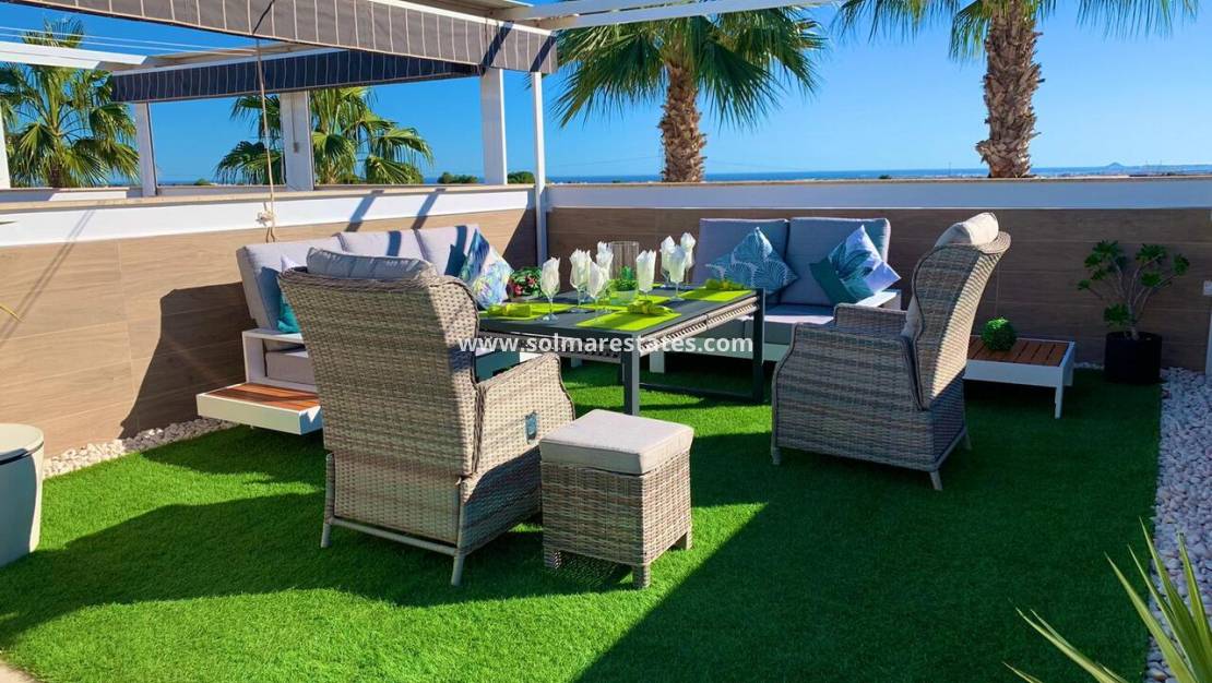 Este hermoso ático situado en una selecta comunidad cerrada de Lo Romero Golf, se ofrece en excelentes condiciones con impresionantes vistas al campo y vistas lejanas al mar. La propiedad está situada a solo 5 minutos en coche de una variedad de tiendas y servicios locales en Pilar de la Horadada y a solo 15 minutos en coche de las hermosas playas de la Costa Blanca. Esta encantadora propiedad tiene 2 habitaciones dobles, un baño familiar y baño privado en el dormitorio principal. Sala de estar de planta abierta que conduce a una moderna cocina equipada. Hay un pequeño trastero y un solárium en la azotea muy espacioso, con fabulosas vistas de 360 grados de los alrededores. Hay estacionamiento privado y una atractiva piscina y jardines comunitarios. La propiedad se ofrece completamente amueblada y en excelentes condiciones. ¡Comuníquese con nuestro equipo para visitarla lo antes posible!