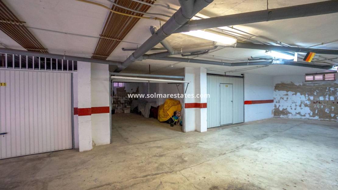 Una característica destacada de esta propiedad es el impresionante garaje privado de 47 m², ubicado en el mismo edificio. Este amplio espacio ofrece estacionamiento seguro y suficiente espacio de almacenamiento, una ventaja cada vez más escasa tan cerca de la costa.