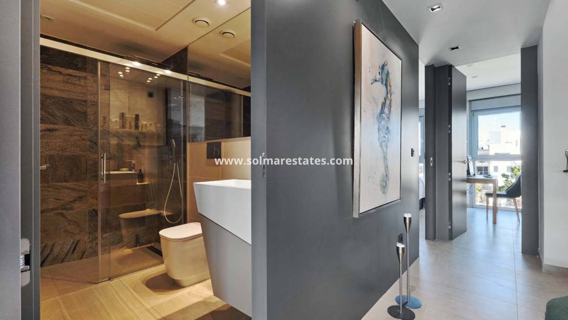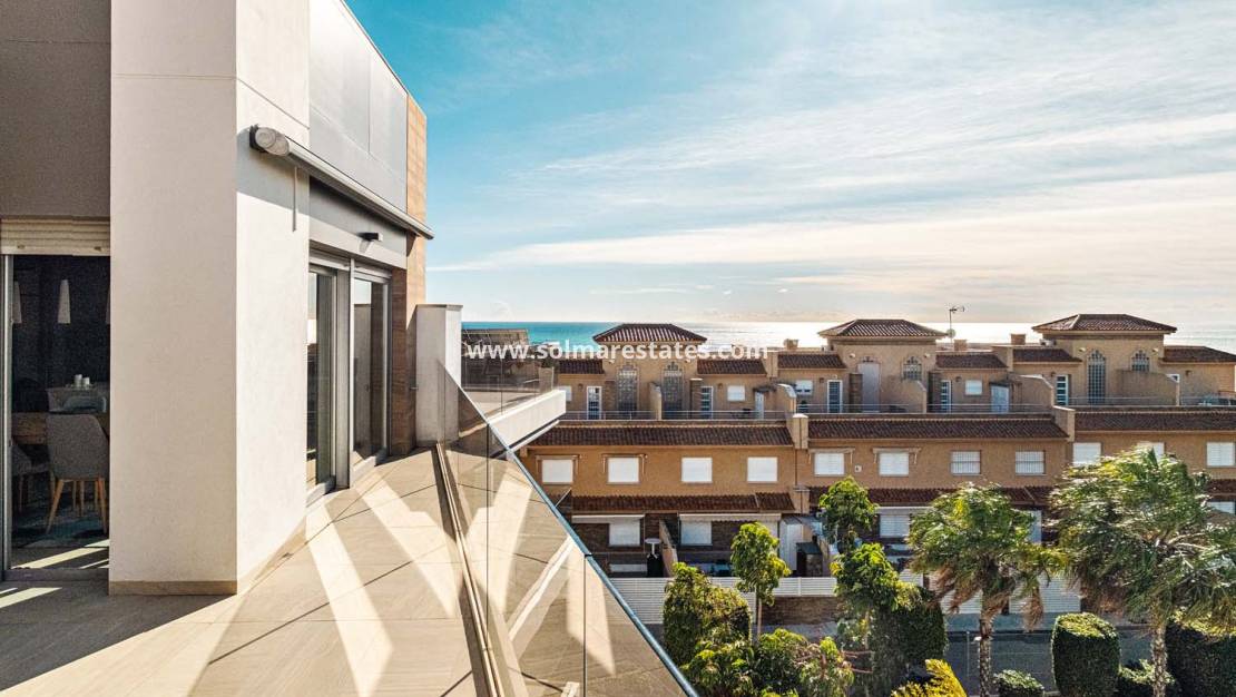Pinar Properties se enorgullece en presentar este excepcional ático de tres dormitorios y dos baños, ubicado en la prestigiosa comunidad Bioko Deluxe en Cabo Roig. Con una envidiable combinación de lujo, confort e impresionantes vistas al Mediterráneo, esta propiedad se encuentra a poca distancia a pie de bares, restaurantes y servicios locales.