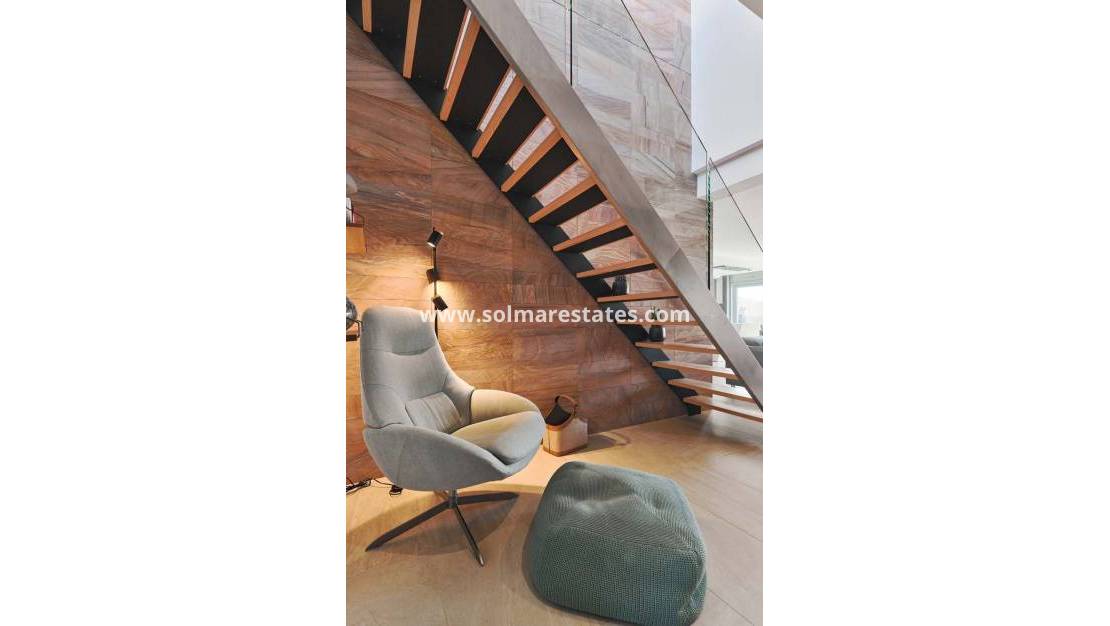 Una elegante escalera interior conduce al elemento más destacado de la casa: un espectacular solárium privado en la azotea. Este impresionante espacio incluye jacuzzi, cocina exterior, calefactor infrarrojo y amplio espacio para relajarse y recibir invitados, todo ello con impresionantes vistas al mar y al paisaje costero de fondo.