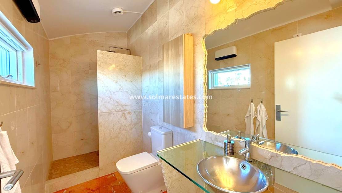 En la planta baja hay dos dormitorios, uno de ellos con baño privado, mientras que la planta superior cuenta con un tercer dormitorio con su propio baño privado, lo que ofrece privacidad y flexibilidad para la familia o los invitados.