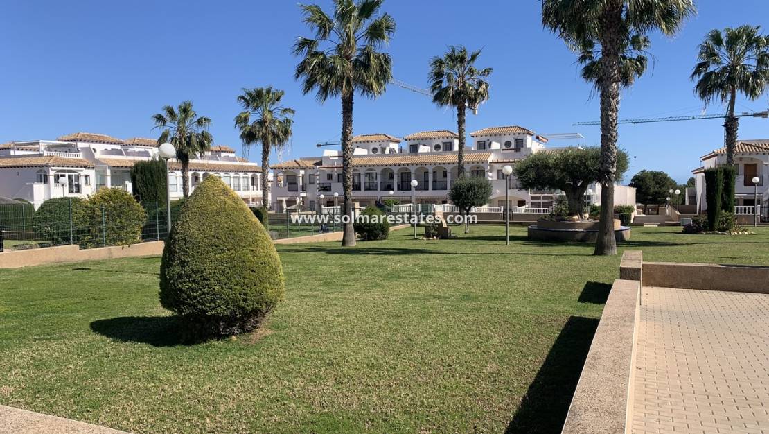 Descubra esta encantadora casa adosada de 2 dormitorios ubicada en la codiciada comunidad La Cinuelica R15 en Punta Prima, que ofrece una excelente oportunidad para crear su hogar ideal en una ubicación costera privilegiada.