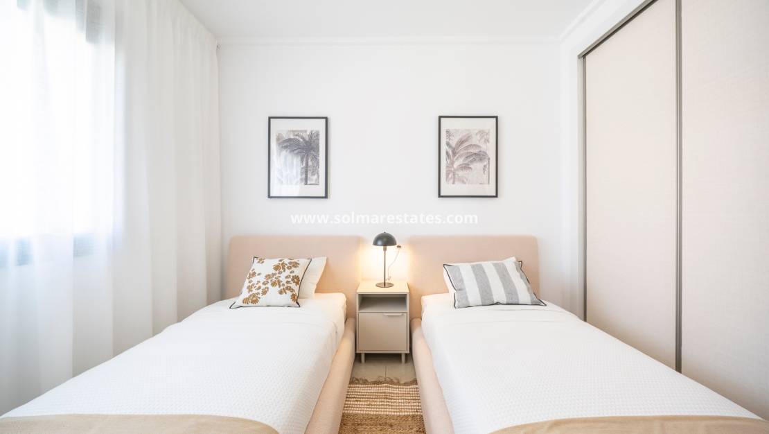La propiedad tiene una superficie construida de 79,27 m² y consta de dos dormitorios dobles, ambos con armarios empotrados, y un moderno baño familiar con ducha a ras de suelo. El luminoso salón-comedor de planta abierta se integra a la perfección con la cocina, creando un espacio funcional y acogedor.
