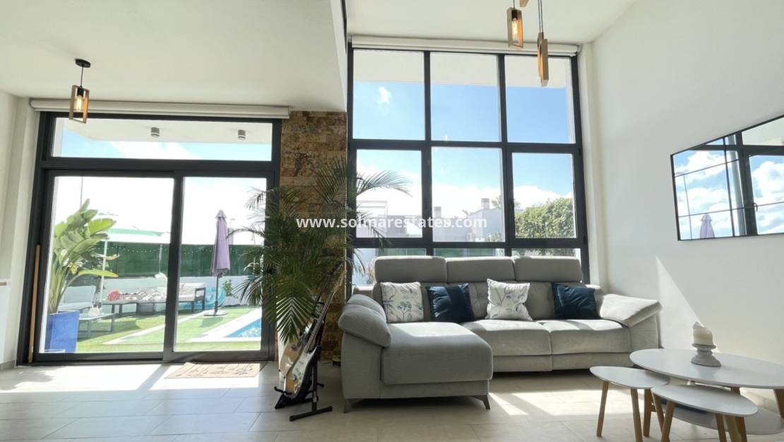En su interior, la villa impresiona por sus techos altos, grandes ventanales y un diseño moderno y diáfano , que crea un ambiente luminoso y espacioso. La vivienda se entrega completamente amueblada y equipada , lista para entrar a vivir de inmediato o para alquilar.