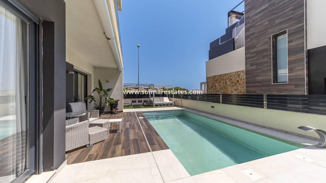 Las zonas exteriores están diseñadas para la relajación y el entretenimiento, con amplias terrazas perfectas para disfrutar del clima de la Costa Blanca.