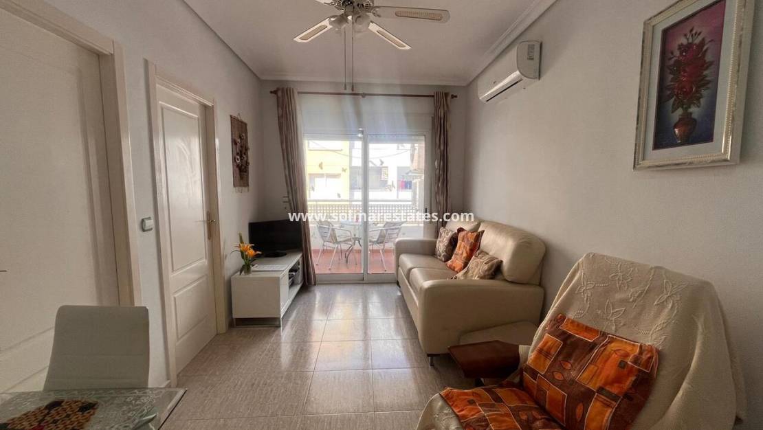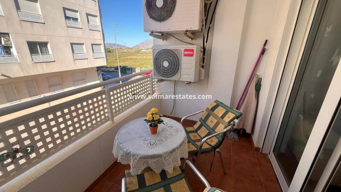 La propiedad cuenta con un espacio luminoso y acogedor, con aire acondicionado para mayor comodidad durante todo el año. Salga al balcón privado y disfrute de una agradable vista lateral de la cercana sierra de Callosa de Segura , que ofrece un entorno tranquilo y pintoresco para relajarse por las mañanas o por las tardes.