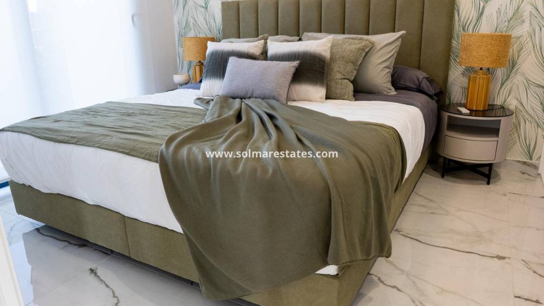 Bungalows: Unidades de planta baja con jardín privado u opciones de planta alta con solárium. Todos los bungalows incluyen dos dormitorios, dos baños, una plaza de aparcamiento y un trastero, alrededor de una zona comunitaria central con piscina y jardines paisajísticos.