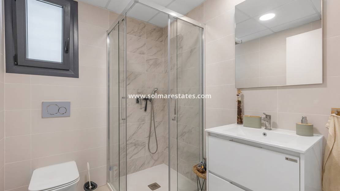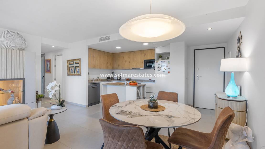 Este apartamento en el complejo Ocean Dream ofrece una distribución muy práctica combinada con una excelente ubicación costera, a tan solo 200 metros de la playa Punta Prima. Con 84 m² de superficie habitable, la propiedad se distribuye de forma inteligente en dos dormitorios y dos baños completos, brindando comodidad y funcionalidad.