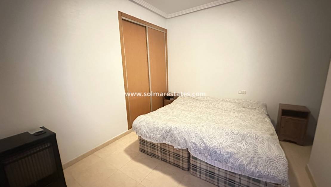 El complejo ofrece zonas comunes bien mantenidas, entre las que destacan una piscina en la azotea con vistas panorámicas y un solárium comunitario, que proporciona un amplio espacio para tomar el sol y relajarse durante todo el año.