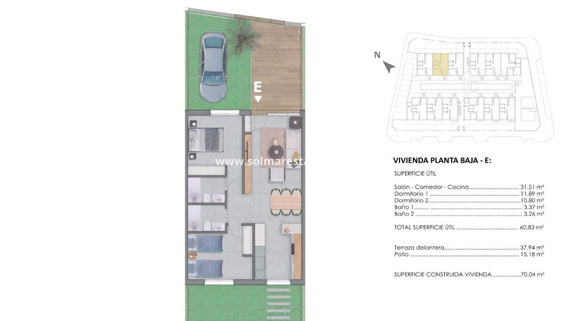 Precioso residencial de obra nueva de 24 bungalows, diseñados y pensados para vivir con el máximo confort en un enclave privilegiado rodeado de todo tipo de servicios y a tan solo 4km del mar.