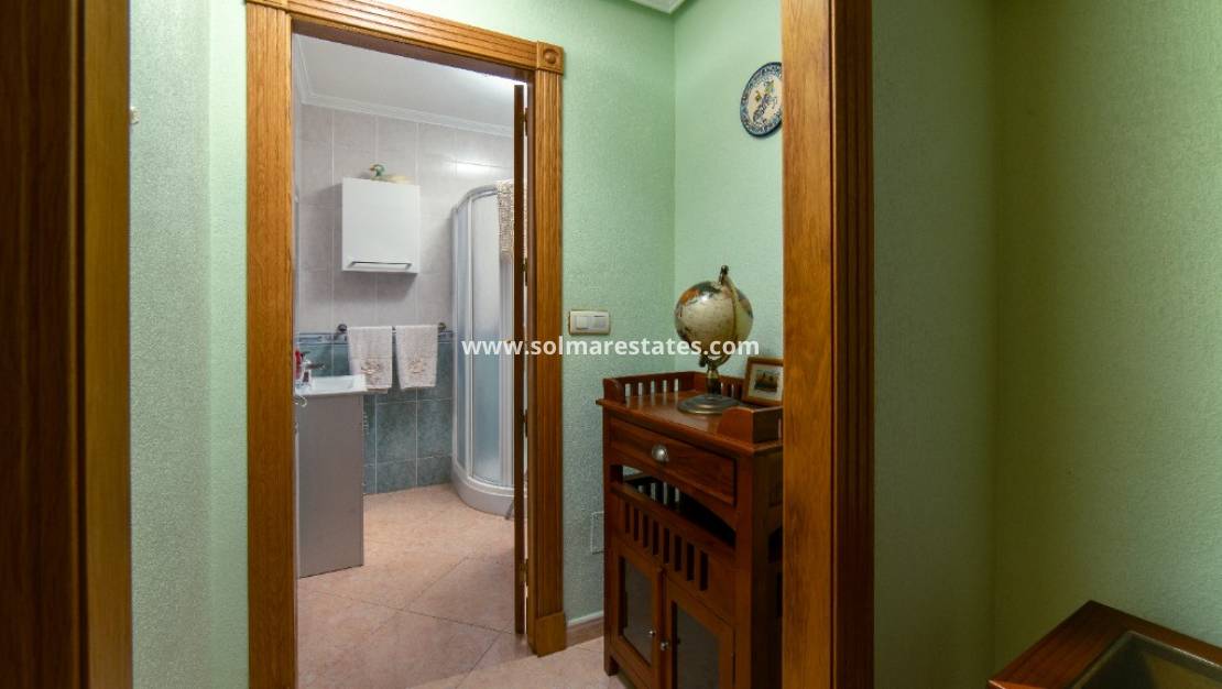 En la planta superior, hay dos habitaciones luminosas, un baño completo y un amplio balcón con impresionantes vistas panorámicas. Desde aquí, podrá disfrutar de las vistas a la famosa Laguna Rosa de Torrevieja por un lado y al mar Mediterráneo por el otro.