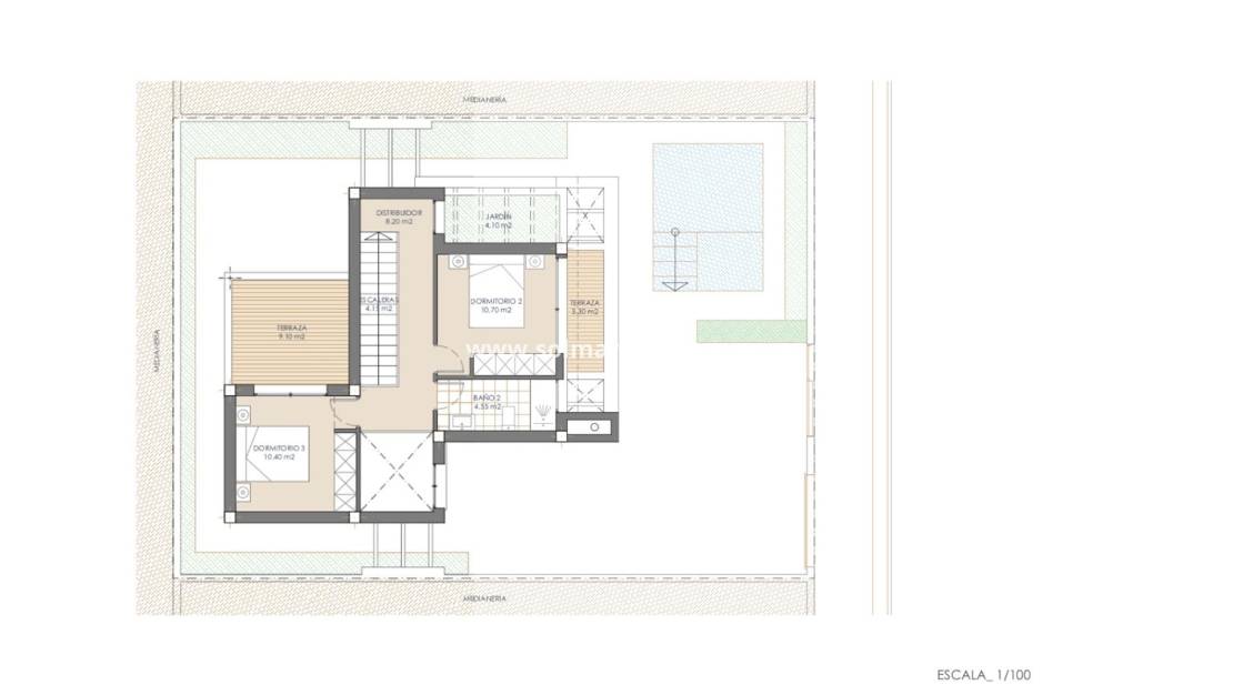 VILLAS DE OBRA NUEVA EN SAN JUAN DE LOS TERREROS La arquitectura contemporánea e innovadora de las villas modernas llega para crear un complejo residencial situado en la localidad de San Juan de los Terreros en Pulpí, Almería, en el sur de España. Estas cuidadas viviendas y complejo residencial combinan un excepcional nivel de diseño y calidad con los más altos estándares de sostenibilidad y bienestar. Viviendas meticulosamente diseñadas por el equipo técnico de arquitectos, para que la luz, la amplitud y la orientación doten a cada vivienda y parcela de un carácter especial. Espacios únicos que abren la puerta a un nuevo estilo de vida para disfrutar. La cimentación y estructura de las viviendas están resueltas con hormigón armado y bajo garantía decenal. Fachadas diseñadas para reducir la demanda energética de la vivienda, combinadas con diversos materiales para conseguir una estética coherente en cuanto a composición y color como se refleja en la infografía. Amplias terrazas dotadas de sólidos antepechos para proporcionar seguridad en las barandillas de las terrazas, otorgando amplitud y luminosidad. Los cerramientos exteriores de la parcela se tratarán con los mismos materiales utilizados en la vivienda, garantizando la integración en el conjunto residencial. Cubiertas planas ventiladas y aisladas sobre forjados, con diferentes acabados según su ubicación y uso. La puerta de entrada a la vivienda será blindada. Las puertas del dormitorio principal, baños secundarios y aseos incluirán cerraduras. La carpintería exterior constará de ventanas y balconeras de Aluminio lacado con persianas enrollables de lamas de aluminio, motorizadas en salones. Sistema de video portero, que garantiza el control de acceso individual para cada una de las viviendas. Los cuartos de baño estarán equipados con lavabo, inodoro y ducha, y los aseos dispondrán de inodoro y lavabo. Los baños cuentan con sanitarios de diseño moderno, de porcelana vitrificada acabada en blanco, de la marca Roca y modelo Gap, con grifería monomando cromada o negro mate a elegir. Las mamparas de ducha irán fijadas con cristal templado de 8mm con una longitud de 80cm. Cada preinstalación está diseñada para un sistema de hasta 10 paneles, que pueden instalarse con un inversor solar conectado a la red eléctrica de la vivienda para minimizar el consumo eléctrico. Estos paneles se integrarán en el tejado, en la zona de instalación, ocultos desde el exterior de la vivienda. La entrada de aire a las viviendas se asegurará mediante la incorporación de un sistema de microventilación en las ventanas de salones y dormitorios. Salida de humos independiente para campana extractora de cocina. Preinstalación de domótica en la vivienda con preparación para una futura instalación de domótica para control de climatización y calefacción de habitaciones, persianas y posibles sistemas de alarma de intrusión. Preinstalación de videovigilancia en la zona de aparcamiento y zonas interiores de la parcela. Cada vivienda dispondrá de una cocina totalmente instalada y acabada en color blanco mate, según diseño, con sistema GOLA. Los armarios interiores serán blancos, con puertas abatibles y cajones con freno bajo placa vitrocerámica, listos para instalar electrodomésticos vistos. Los electrodomésticos no están incluidos. Los dormitorios con armarios empotrados se entregarán con puertas correderas en color blanco mate. Estas viviendas se caracterizarán por su eficiencia y ahorro energéticos, así como por su baja contaminación. Están diseñadas con un enfoque de mayor eficiencia para un menor consumo energético, promoviendo un uso racional de la energía a la vez que se cuida el medio ambiente, la calidad y el confort climático dentro de la vivienda. Los vidrios de baja emisividad evitan la pérdida de calor hacia el exterior, lo que se traduce en un ahorro económico al retener el calor en la vivienda durante el invierno y evitar la entrada de calor durante el verano. Los sistemas de climatización y agua caliente sanitaria están diseñados con sistemas individuales para maximizar el consumo y la eficiencia de cada vivienda. San Juan de los Terreros es una pedanía costera perteneciente al municipio de Pulpí. Es conocida por sus magníficas playas, las últimas de Andalucía. Frente a la costa de San Juan de los Terreros se encuentran dos pequeños islotes de naturaleza volcánica que forman el Monumento Natural de Isla de Terreros-Isla Negra. El monumento más característico de la localidad es el Castillo de San Juan de los Terreros, construido en 1764 sobre un promontorio desde el que, en días despejados, se divisa gran parte de las costas de Almería y Murcia. Integrado en la tranquilidad y belleza de su propia naturaleza, bañado por playas y calas de aguas cristalinas, clasificadas entre las mejores de España. Rodeado de paisajes naturales protegidos que nos llenan de calma y a la vez, nos recargan de energía, gracias a una vibrante oferta gastronómica, social y deportiva. Restaurantes exclusivos, clubes deportivos y, por supuesto, excelentes campos de golf con vistas al mar como Aguilón Golf. Un destino perfecto para disfrutar en familia durante todo el año.