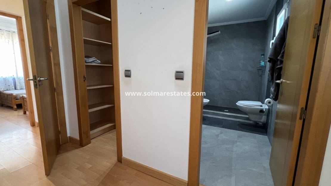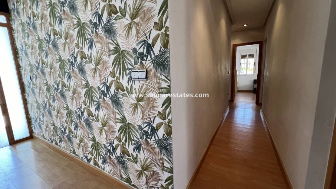 Bienvenido a esta generosa villa adosada de 3 dormitorios y 2 baños, perfectamente situada en una parcela privada con altos muros de privacidad. Esta encantadora casa cuenta con una refrescante piscina y un jardín orientado al sur, ideal para disfrutar del sol durante todo el día. La propiedad también incluye entrada, zona de aparcamiento subterráneo y un amplio sótano, que ofrece un amplio espacio y espacio de almacenamiento. La terraza delantera, perfecta para cenas por la noche, le invita a entrar en esta cálida y acogedora casa. Al entrar, le recibe una acogedora entrada que conduce a una amplia sala de estar y comedor de planta abierta. Con vistas al jardín y una acogedora chimenea, este espacio es perfecto para relajarse y entretenerse. La cocina familiar bien equipada ofrece acceso directo al jardín trasero y al lavadero. Al pasar a la sala de estar, encontrará un gran baño familiar, dos generosos dormitorios dobles y una lujosa suite principal. La suite principal cuenta con un vestidor y un baño en suite, lo que proporciona un refugio privado dentro de la casa. Esta villa está diseñada para la comodidad y la conveniencia, con detalles bien pensados y un amplio espacio para la vida familiar. No pierda la oportunidad de hacer de esta hermosa propiedad su nuevo hogar. Programe una visita hoy mismo y experimente lo mejor de una vida relajada y privada.